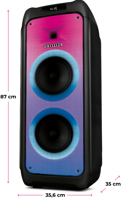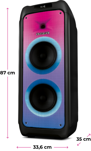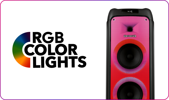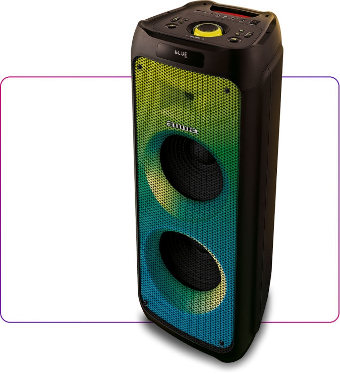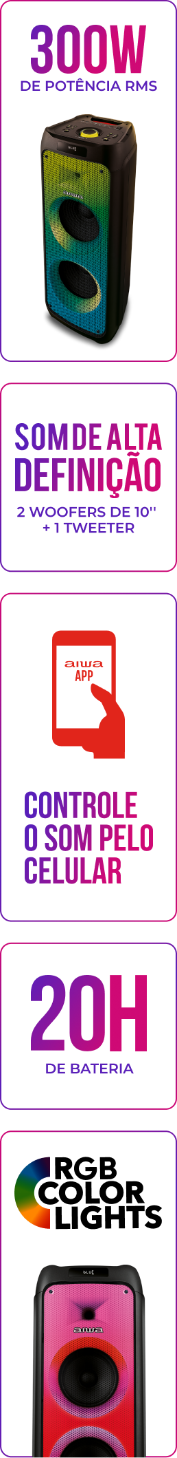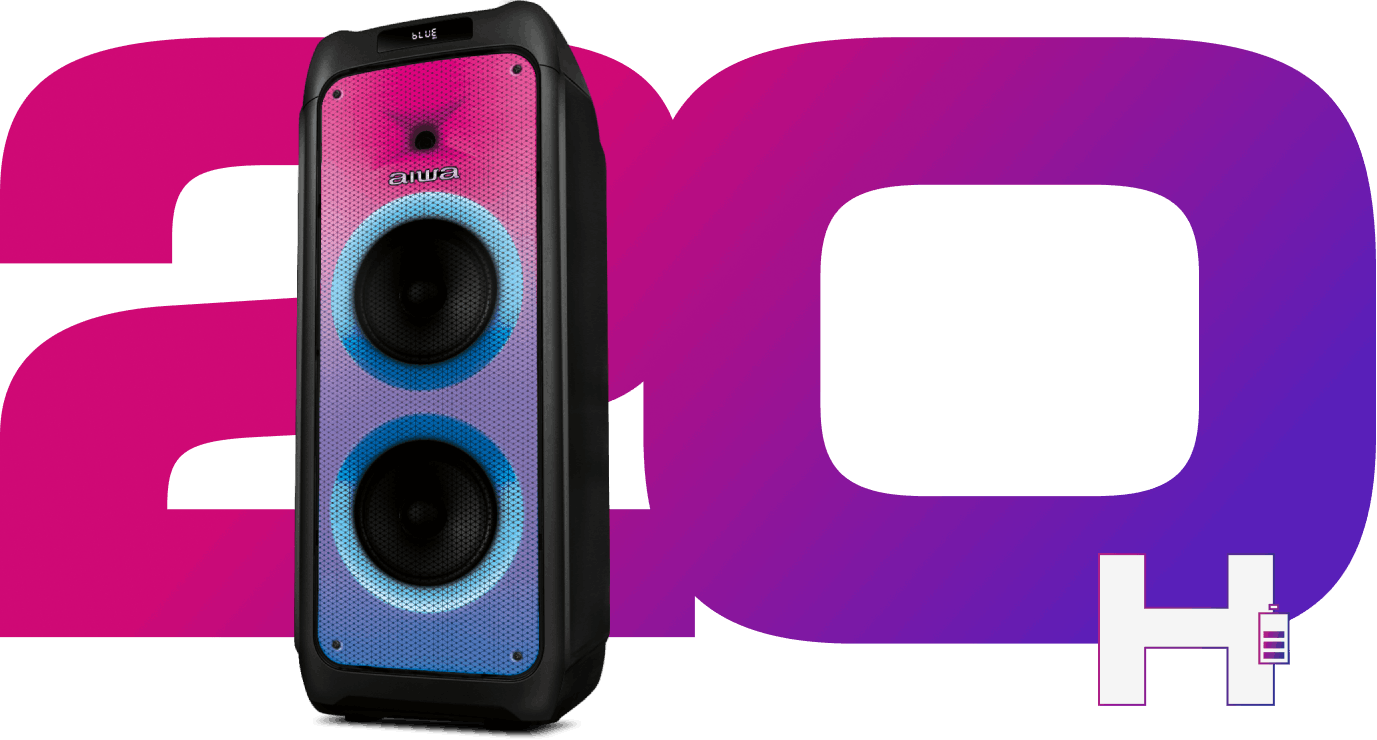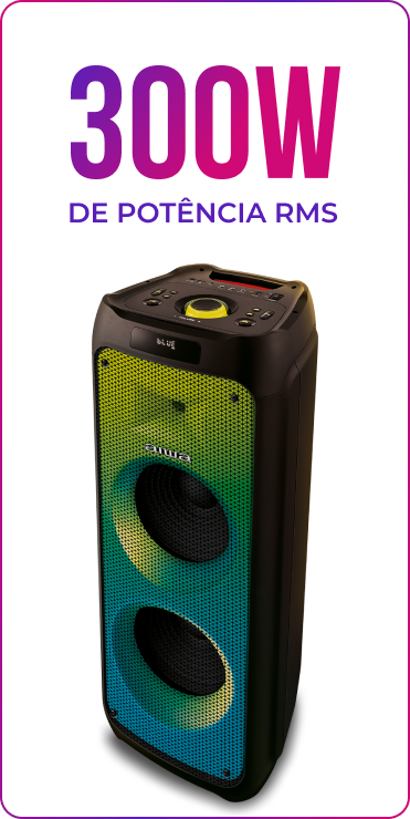 bateria. E pelo APP da AIWA Brasil, você personaliza as cores das