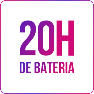*20 horas com 50% do volume e luzes desligadas. A duração real da bateria varia conforme as condições de uso.